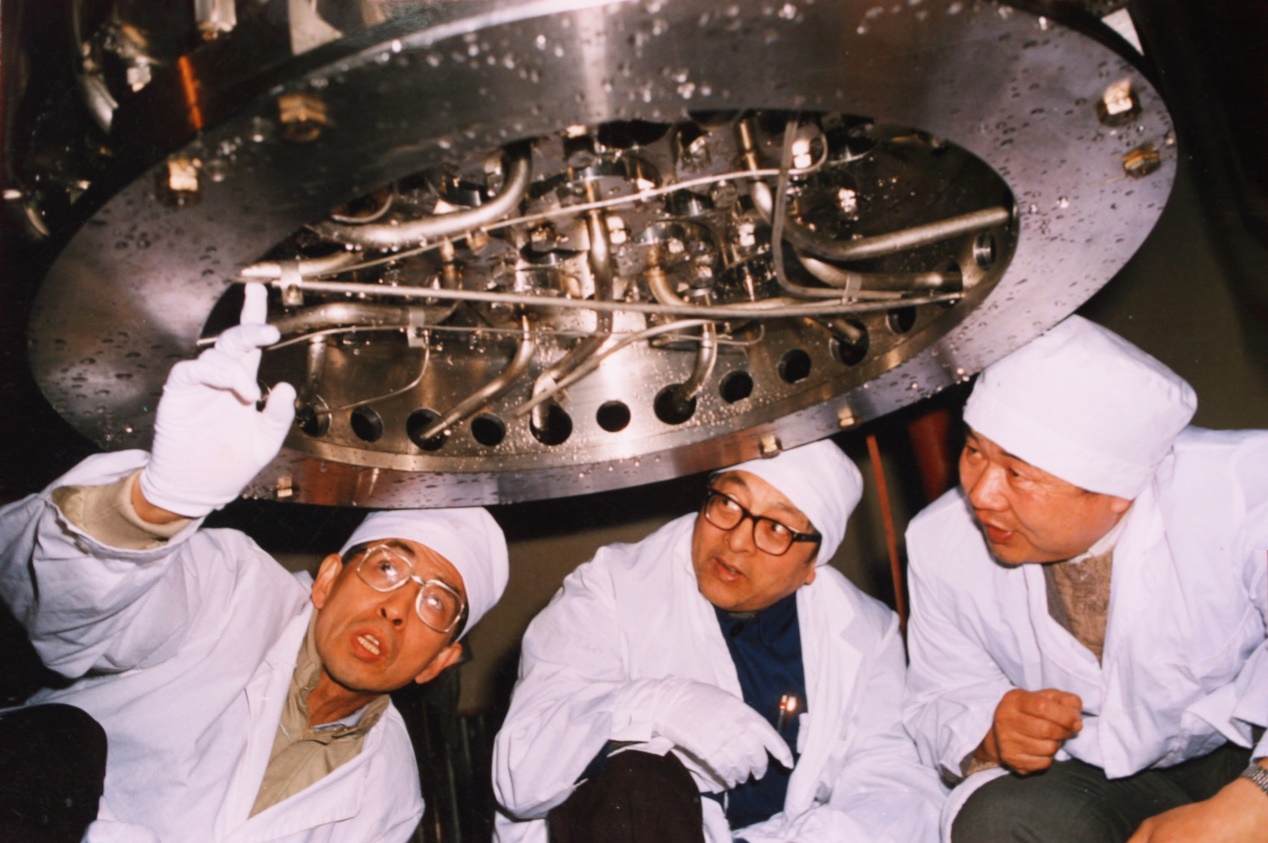 王大中(左一)宣布低温供热反应堆启动运行成功