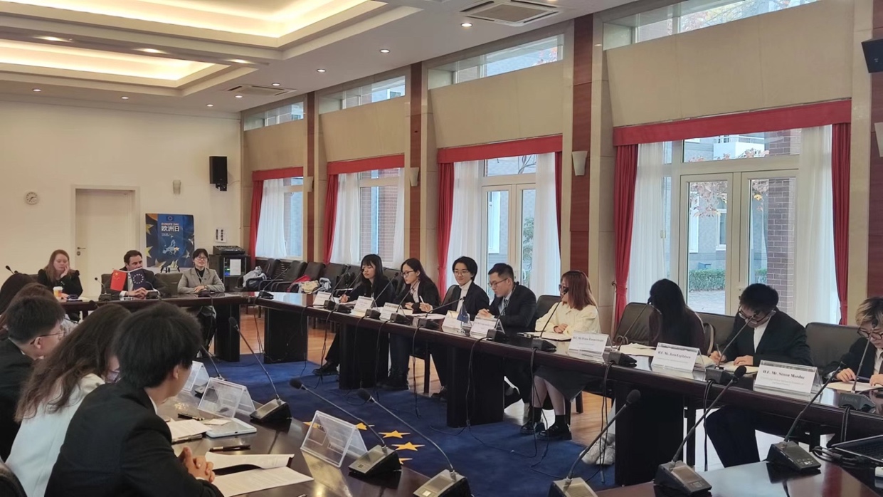 首页网11月21日电 11月17日下午,新闻与传播学院《政治传播:理论与实践》课程学生在授课教师、学院副院长张莉带领下来到欧盟驻华使团,开展了一场具有实践意义的“模拟中欧峰会暨新闻发布会”活动。