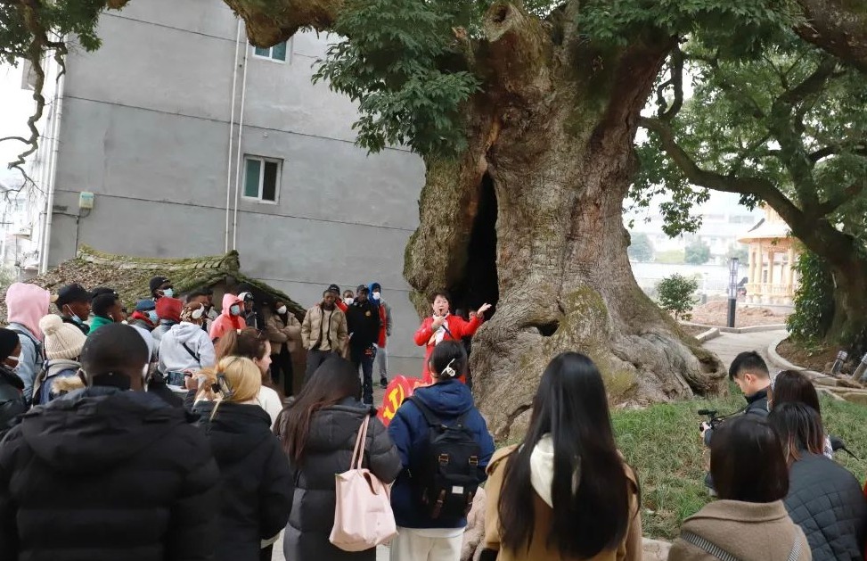 2月伊始,调研团队参加了为期三天的“黄帝缙云”国情教育活动。同学们与来自十余个国家的40多名浙江农林大学留学生一同学习体悟缙云的“黄红绿”三色文化融合发展模式——以黄帝文化为代表的优秀传统文化、红色革命文化和象征着“绿水青山”的生态文明理念。而这一场中外青年同游之旅,也把跨越肤色、跨越语言的真挚友谊,播撒在了缙云的乡间小路上。
