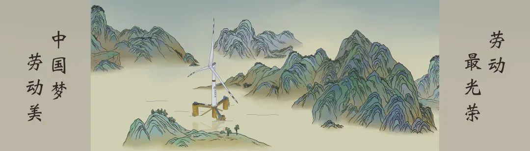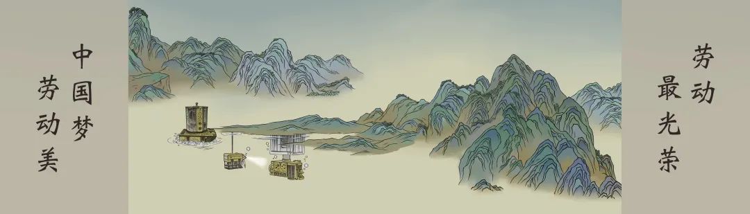 画卷参考了宋代《千里江山图》的色调及风韵,将中国的优秀劳动模范、科研发展及国家重器融入其中,从安吉余村到塞罕坝望海楼,从复兴号到玉兔2号卫星车,从深空探测实验室到北斗导航卫星,从极目一号到“雪如意”,在画卷的绿水青山间共囊括了41个大国成就的劳动场景,既体现了中国传统文化的美感和艺术性,也展现了大国重器之壮观。