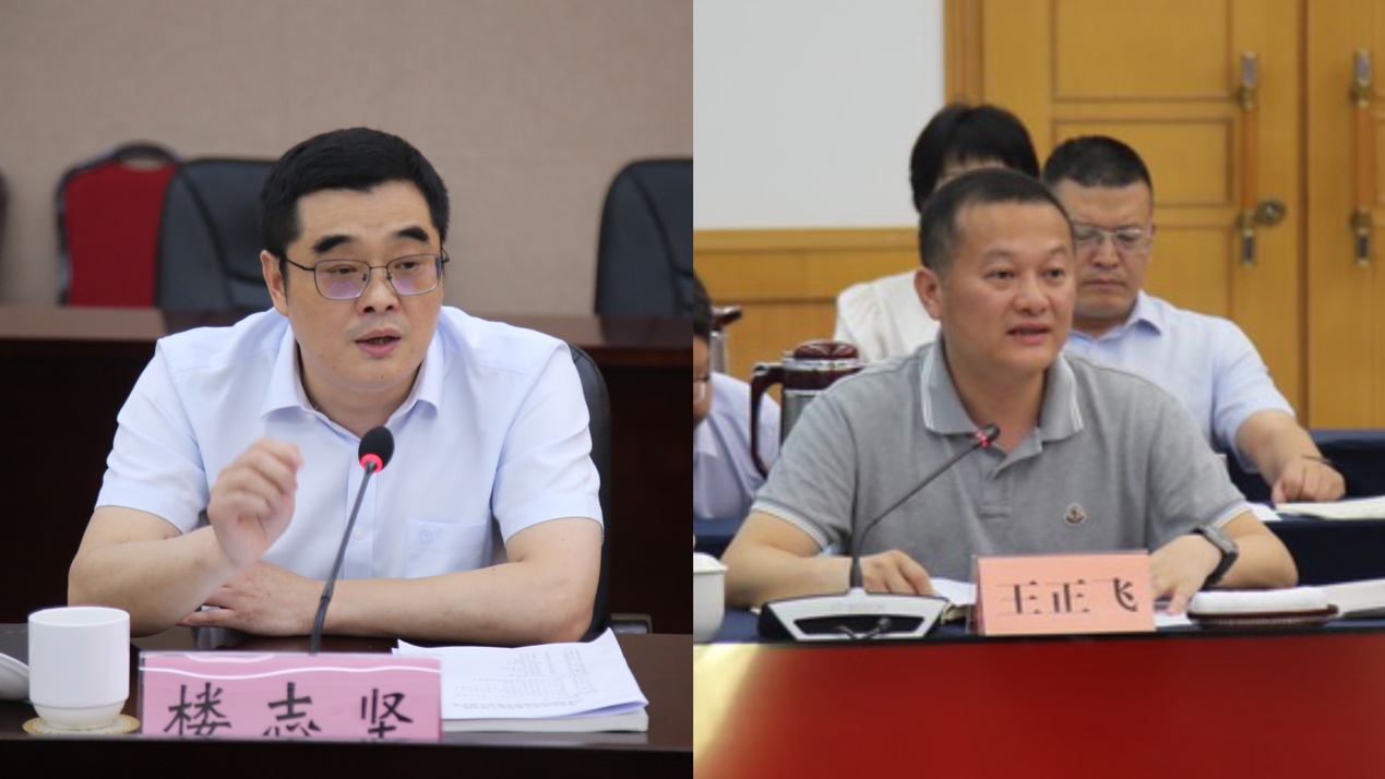 丽水市常务副市长楼志坚(左)、缙云县委书记王正飞与调研团座谈