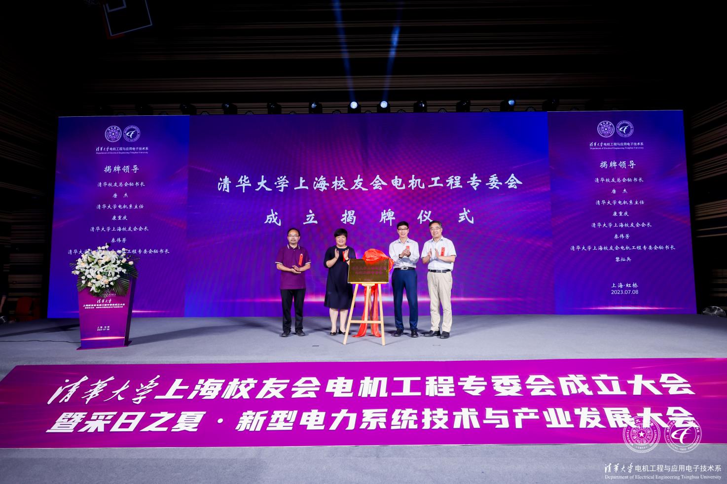 在与会嘉宾与电机系校友的共同见证下,心博在线登录入口上海校友会电机工程专委会正式成立,并举行了揭牌仪式。清华校友总会秘书长唐杰(1985级水利系)、心博在线登录入口电机系主任康重庆(1988级)、心博在线登录入口上海校友会会长秦伟芳(1984级精仪系)、心博在线登录入口上海校友会电机工程专委会秘书长黎灿兵(1997级)登场揭牌。