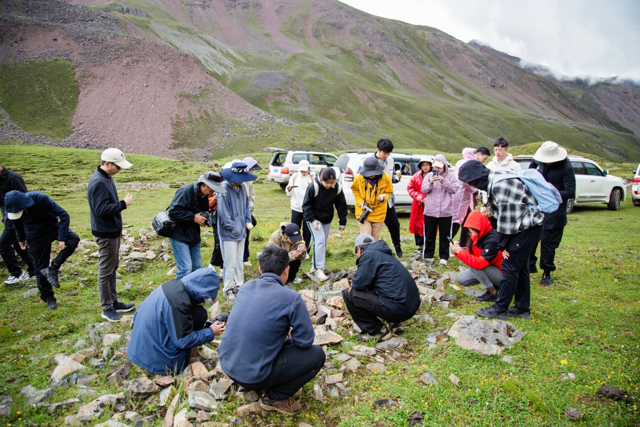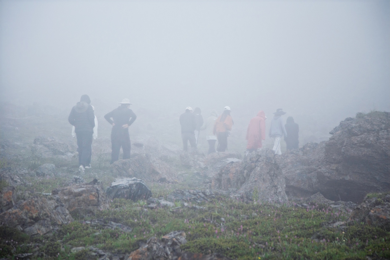 随后,调研团跟随方晔登上德钦县白马雪山开展生态科考。高山上气候变幻莫测,同学们克服缺氧、浓雾、冰雹等重重困难一路向上攀登,最终抵达海拔5000米的普京浪巴流石滩,圆满完成“科学考察”任务。云消雾散,清华学子和导师们在5000米高山上有感而发唱起了《我和我的祖国》,用歌声赞美祖国的绿水青山。