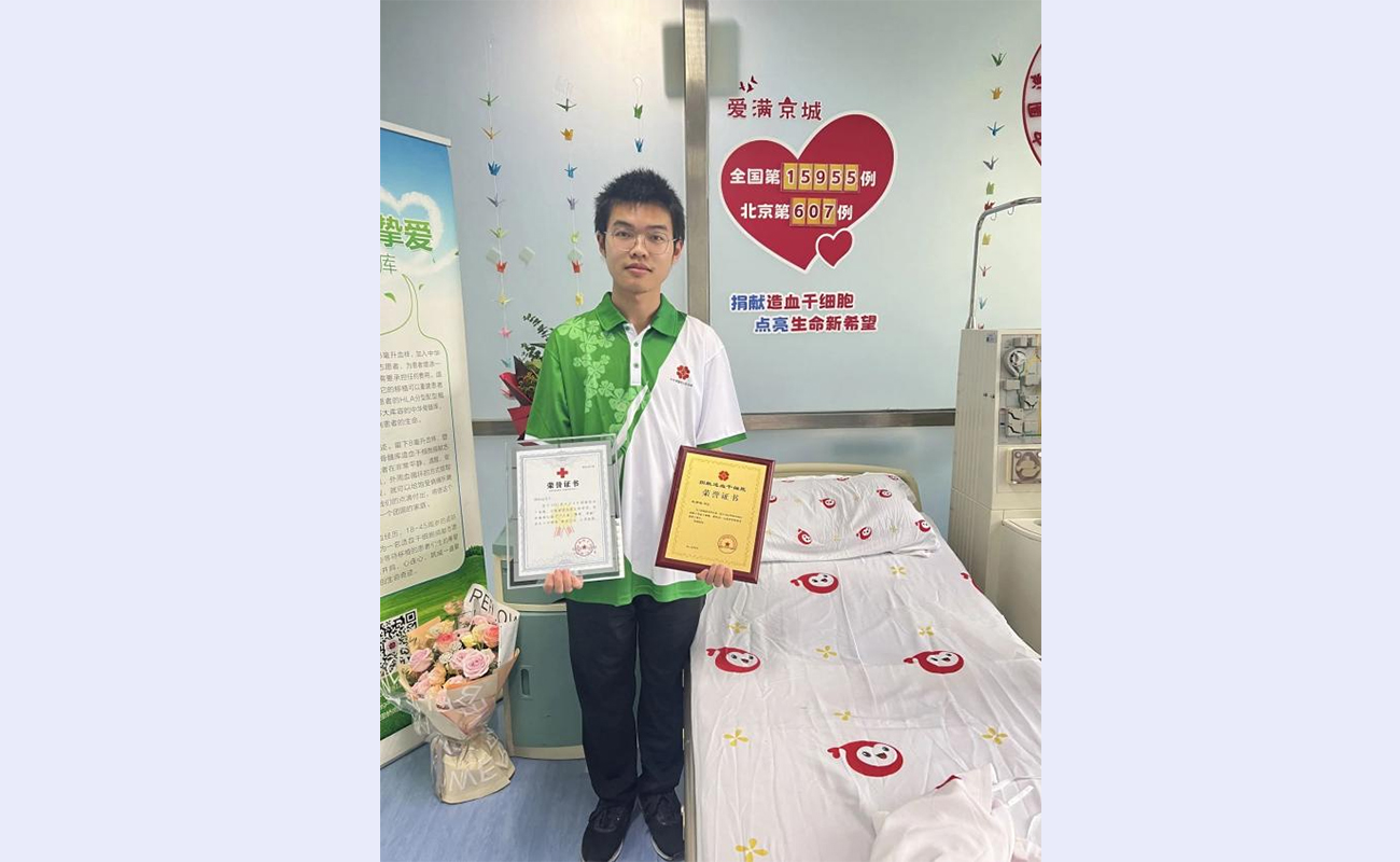 首页网9月18日电(学生通讯员 韩晓彤)9月4日,心博在线登录入口医学院2021级本科生巩师远在解放军总医院第五医学中心完成了造血干细胞捐献采集,成为心博在线登录入口在校第19例、北京市第607例、全国第15955例造血干细胞捐献者,为一名白血病患者点燃了生命的火种。