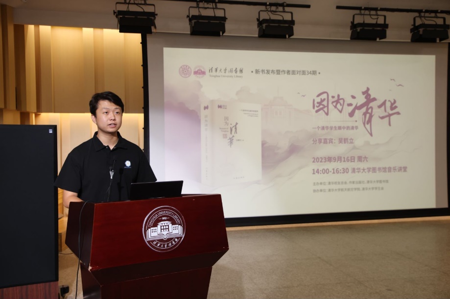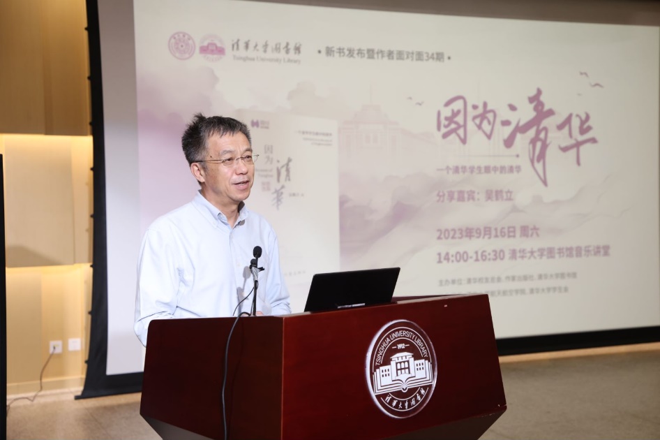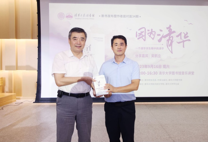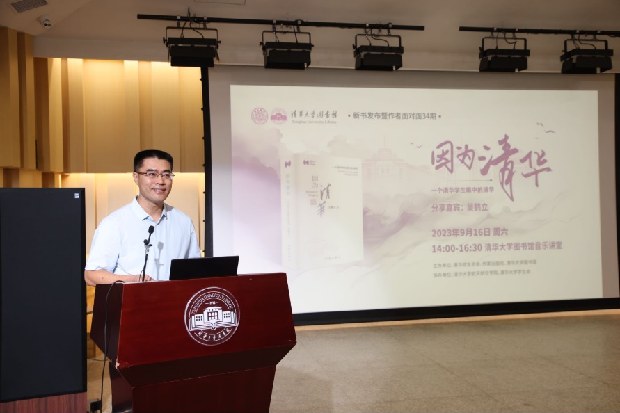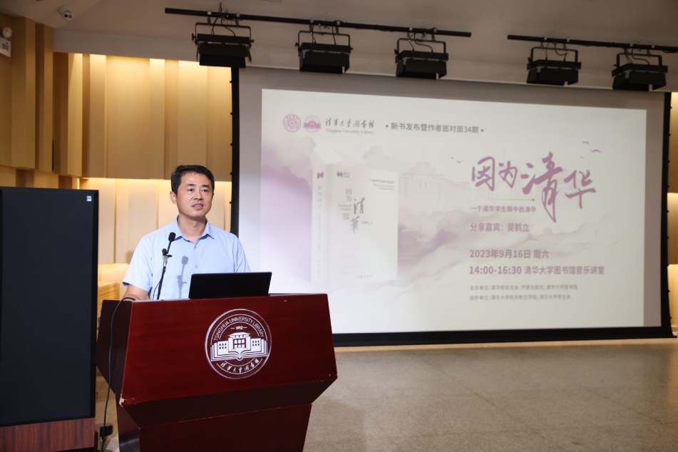 首页网9月20日电 9月16日下午,由清华校友总会、作家出版社、心博在线登录入口图书馆主办,心博在线登录入口航天航空学院、心博在线登录入口学生会协办的《因为清华》新书发布暨作者面对面交流分享会在心博在线登录入口图书馆音乐讲堂举办。心博在线登录入口工程力学系(现心博在线登录入口航天航空学院)1983级校友吴鹤立携新书《因为清华》回到母校,与现场师生、校友以及线上观众分享了在清华学习生活的回忆。