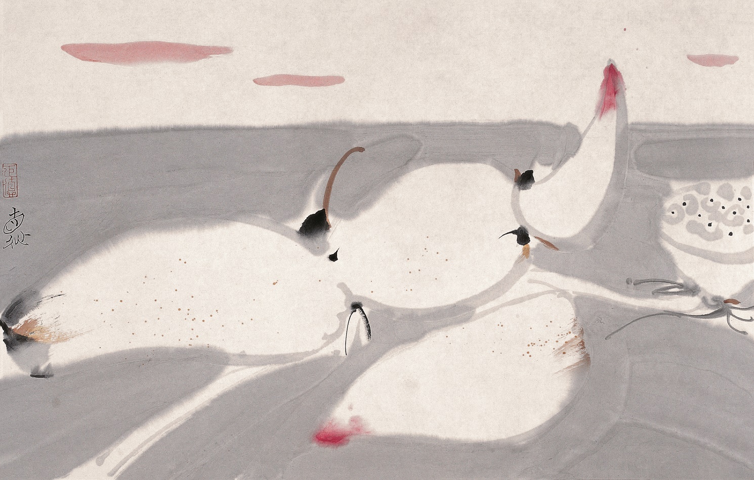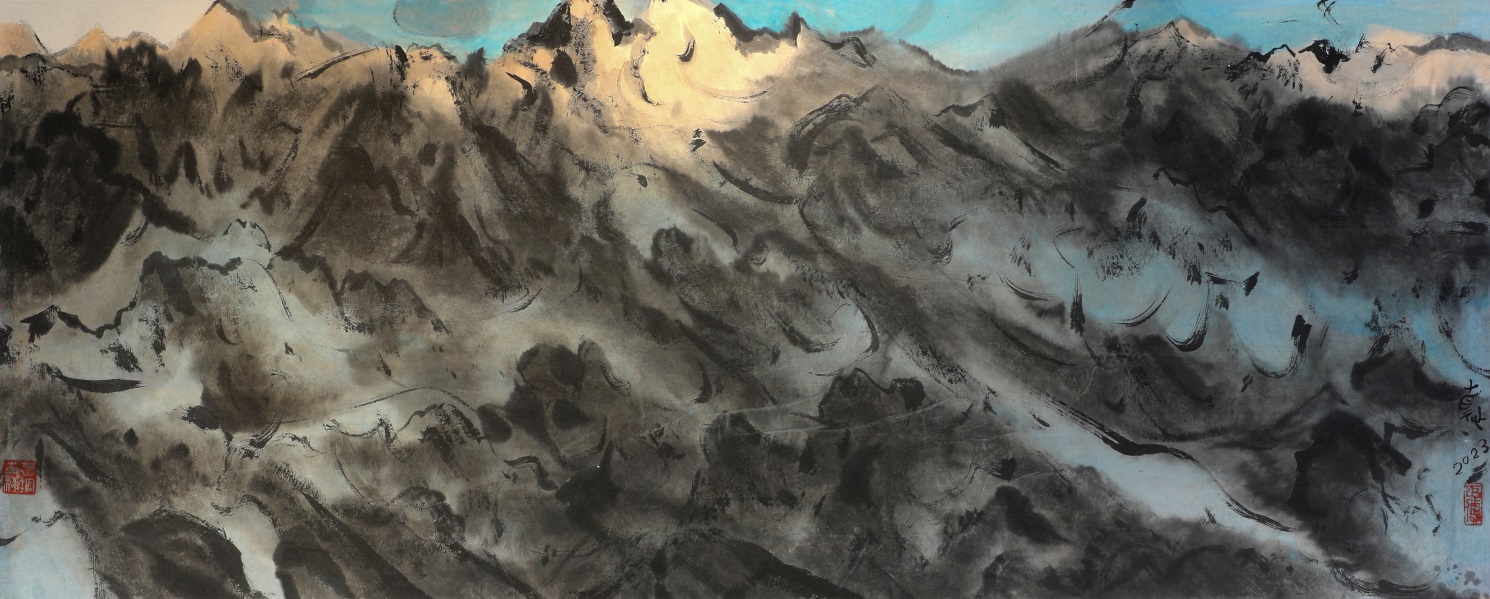 昆仑山上的阴阳湖 纸本水墨设色 180cm×83.5cm 2023