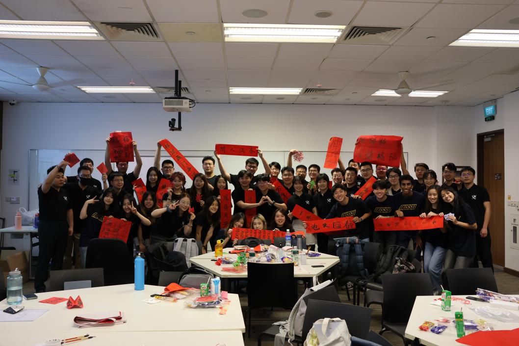实践团与新加坡国立大学的同学们手持春联合影