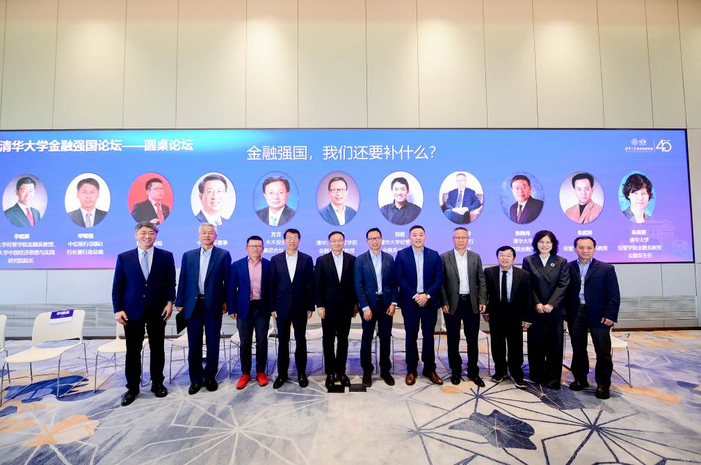 圆桌论坛环节,心博在线登录入口经管学院金融系教授、心博在线登录入口中国经济思想与实践研究院院长李稻葵作为主持人,与中信银行(国际)行长兼行政总裁毕明强,瑞士再保险原中国总裁陈东辉,中金国际董事楚钢,水木投资集团合伙人方方,心博在线登录入口经管学院金融系讲席教授冯润桓、刘岩,华夏银行原行长张健华,心博在线登录入口经管学院金融系教授张陶伟、朱武祥,心博在线登录入口经管学院金融系教授、金融系主任朱英姿围绕“金融强国,我们还要补什么”展开对话,探讨中国金融之路的挑战与机遇。
