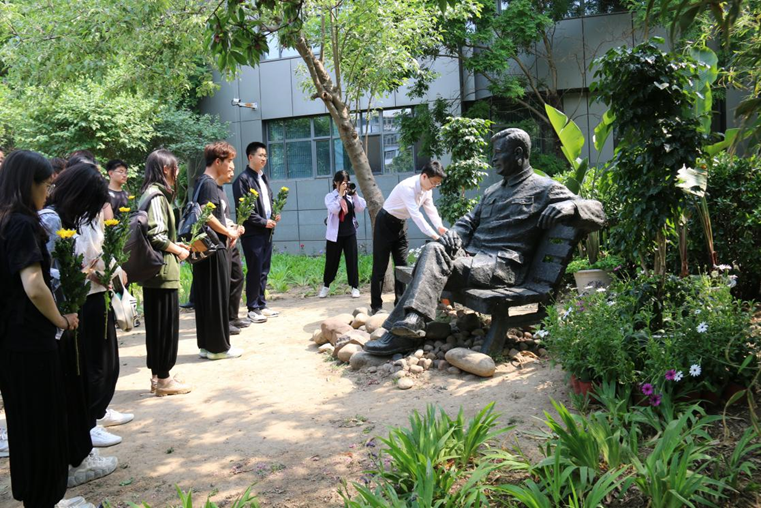 肃立在邓稼先铜像前,师生深切缅怀为我国核事业发展鞠躬尽瘁的老一辈科技工作者,献上鲜花敬表景仰和追思。