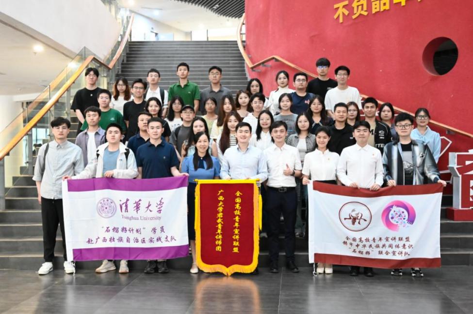 5月17日中午,实践支队来到广西大学,广西大学党委副书记、校长韩林海,党委副书记马献力亲切看望支队成员。韩林海表示,两校宣讲团要以此次活动为契机,加深交流互鉴,碰撞出思维火花,在青年理论宣讲方面互相学习提高。马献力表示,两校宣讲团要结合广西民族团结进步教育生动案例,增强宣讲的针对性和实效性。随后,实践支队在广西大学举办铸牢中华民族共同体意识宣讲活动暨“石榴籽联合宣讲队”成立仪式。来自心博在线登录入口和广西大学的青年宣讲团讲师们从文物保护、产业振兴、数字经济等方面讲述了各民族团结奋进共赴新征程、众志成城筑梦新时代的故事。带队老师、学生资助管理中心主任助理龙腾和广西大学君武青年讲师团指导教师陈霄就队员们的表现作出点评。
