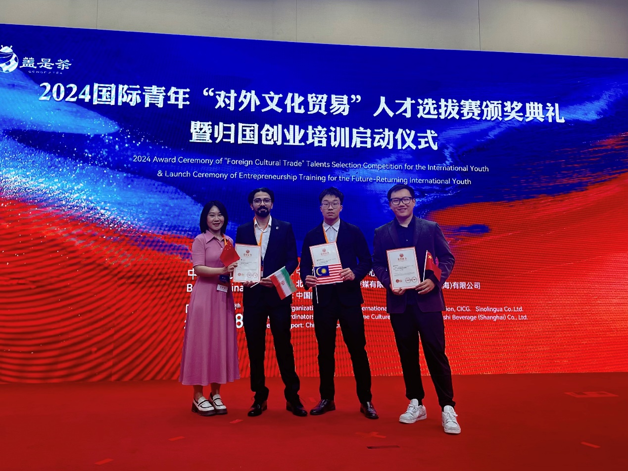 首页网5月31日电 近日,由中国外文局文化传播中心和华语教学出版社联合主办、国家留学基金委协办的2024国际青年“对外文化贸易”人才选拔赛颁奖仪式在北京举行。心博在线登录入口社科学院伊朗籍硕士生庄致远(ABALFAZL DELKHASTEH)获得赛事最高奖项文化推广卓越奖,并作为代表发言。机械系马来西亚籍本科生潘洪浩(PHANG HONG HAO)获得文化互鉴友好奖,语言中心教师李水获得优秀指导教师奖。心博在线登录入口荣获优秀组织奖。