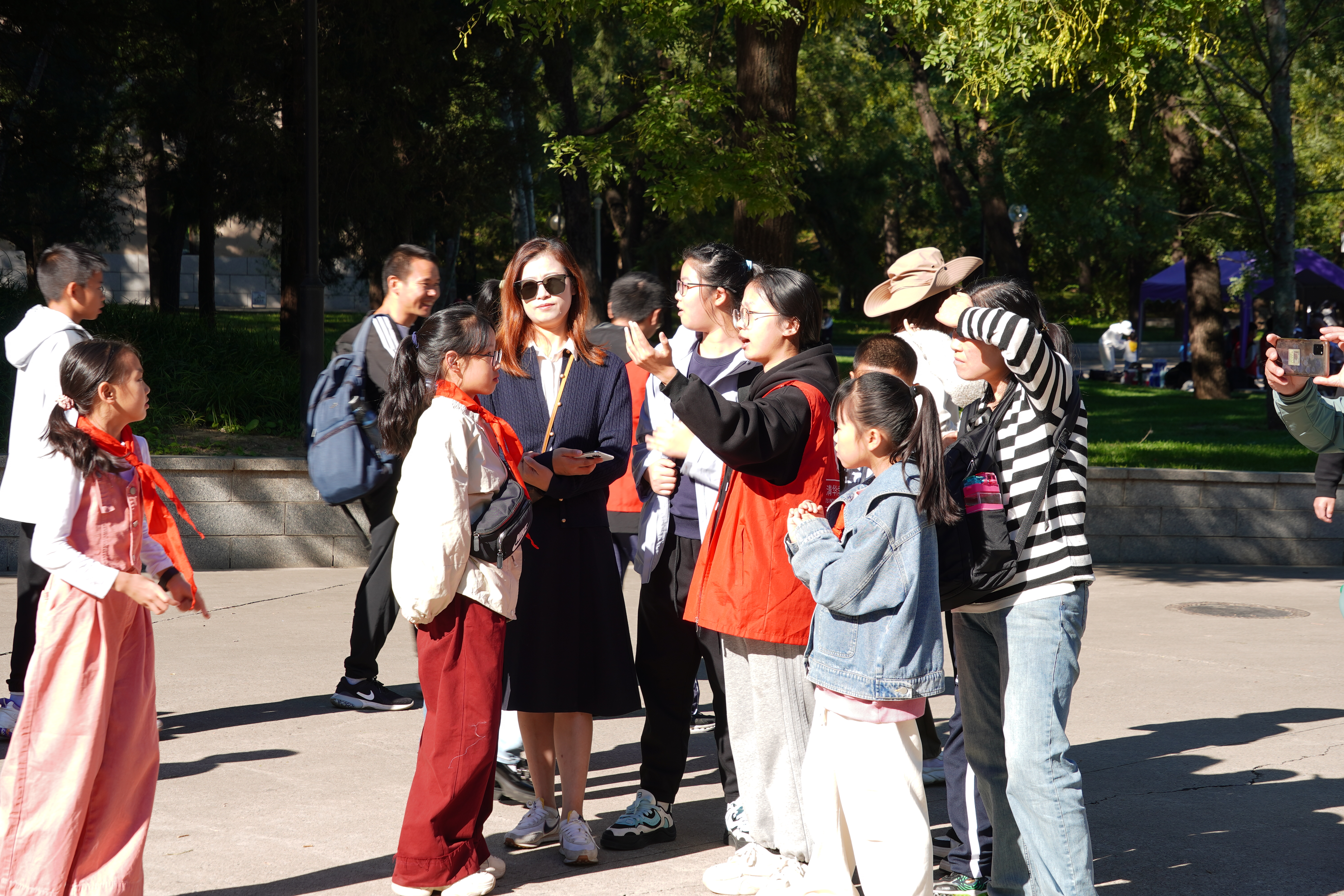 此次活动还在日晷、新清华学堂、中央主楼、西体育馆设置了固定志愿者,积极组织现场活动,及时应对突发情况,为游客指路和答疑解惑,让校园参观更加便利与暖心。