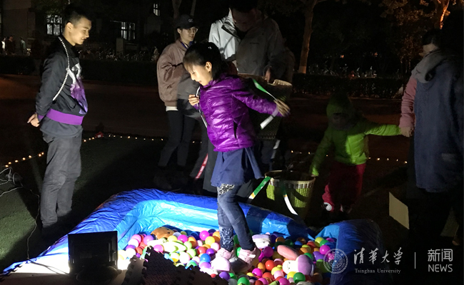 紫荆风情夜现场设置了修车大挑战、小鬼下厨、黄金矿工、劳动工具连连看、光影纸艺等趣味活动。“修车大挑战”环节邀请同学们亲自动手修车,体验装车链、换车胎等过程。或俯身细探、轻拧慢拨,或手执工具、小心翼翼,同学们在动手修车的过程中各显神通。“黄金矿工”游戏点处有一个装满彩色海洋球的波波池,同学们需要背上箩筐,头戴探照灯,寻找混杂在其中的“金矿”小黄鸭。在“小鬼下厨”游戏点,同学们需要在规定时间内用筷子往小方盒中夹入一定数目的花生、黄豆或绿豆。辨豆容易夹豆难,好不容易颤颤巍巍夹起来的豆子,稍有不慎便会前功尽弃。而“劳动工具连连看”游戏则考验同学们能否在规定时间内顺利匹配劳动工具的图片与名称。锄头与铁锹,钉耙与羊角锤,铧犁与龙骨车,丰富各异的劳动工具让不少“只闻其名,不知其形”的同学们大开眼界。