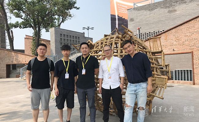 清华美院雕塑系师生在美院毕业生李海斌作品《重生》前合影