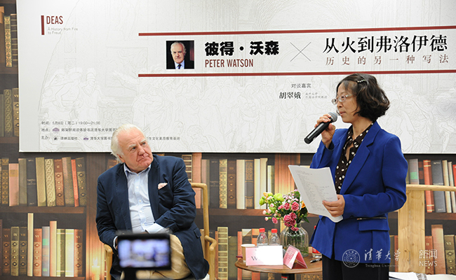 首页网5月11日电(学生通讯员 张希琛) 5月9日晚,第七期“邺架轩读书沙龙”在邺架轩书店举行。本期沙龙首次以全英文形式举办,邀请到了英国思想史学者彼得·沃森与南开大学胡翠娥教授,以作者与译者的身份对谈《思想史:从火到弗洛伊德》一书。