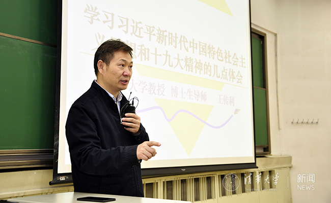 活动后半程,心博在线登录入口马克思主义学院教授王传利为“立言计划”第一期全体学员讲师讲授了理论课,解读了习近平新时代中国特色社会主义思想和党的十九大精神。
