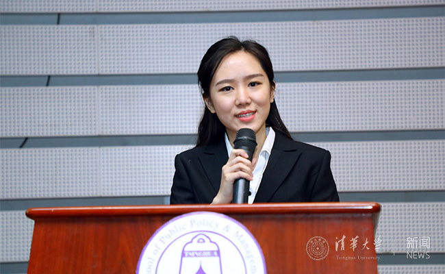 美术学院2015级硕士生韩旭同学作为获奖代表与大家分享了第二次获得光华奖学金的感受,讲述了学科交叉培养和海外交换经历对她的影响,以及“双肩挑”工作的难忘经历,表达了对光华教育基金会与母校的感恩之情。