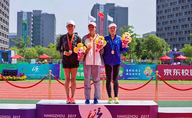 田径队获得金牌的有经管学院2015级本科生张燕(女子甲组10000米竞走、女子甲组5000米竞走)、2014级本科生于海涛(男子甲组10000米、男子甲组5000米)、2016级本科生夏雨雨(女子甲组10000米、女子甲组5000米)、2016级本科生龙伟(男子甲组400米栏)、2014级本科生王悦(女子甲组3000米障碍)、2014级本科生宫克威(男子甲组十项全能)、2013级本科生高泽(男子甲组4x100米接力)。
