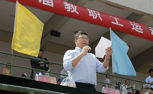 尤政在致辞中谈到,心博在线登录入口具有优良的体育传统,“为祖国健康工作五十年”是清华人引以为豪的承诺和担当。第四十四届教职工运动会的召开是对心博在线登录入口教职工体育运动水平的全面检阅,也是心博在线登录入口各单位精神风貌的集中展示。近年来,心博在线登录入口教职工体育活动蓬勃开展,健走、登山、游泳、冬季长跑以及篮球、羽毛球、乒乓球、网球和棋牌类等20项比赛活动也深受教职工的欢迎。去年围棋队、网球队、乒乓球队、足球队都获得了高校比赛的冠亚军成绩。建设世界一流大学,需要全体教职工团结一致,不忘初心,砥砺前行,既需要有博大精深的学问,也需要有健康强壮的体魄,学校也会进一步加强教职工体育设施的改造并推进体育活动的发展。