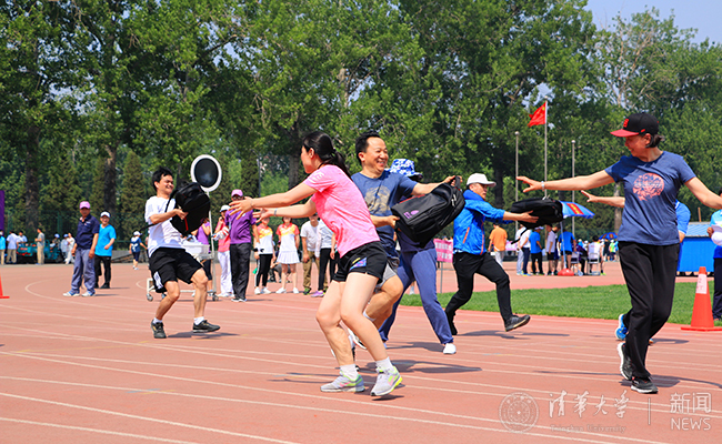 开幕式结束后,分工会队伍上场,进行了一项2015年开始的新增趣味竞赛项目——“薪火相传”八人接力赛,“薪火相传”正体现了清华人的代代相传的“自强不息,厚德载物”清华精神。