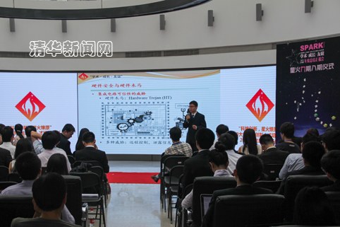 来自星火八期的姚颂介绍了他的研究“基于特征分析的硬件木马检测”。他自主研发的检测技术突破了传统的UCI(未使用电路识别)等方法,在准确率与计算效率方面已达世界先进水平。姚颂也曾因此项技术受邀赴阿里移动安全论坛演讲。