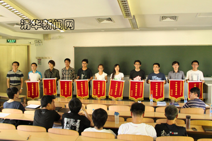 校学生会秘书长张超为“十佳院系学生会”代表发放了锦旗和奖品;并向电机系与经管学院学生会授予“最佳风采展示奖”奖牌与奖品。