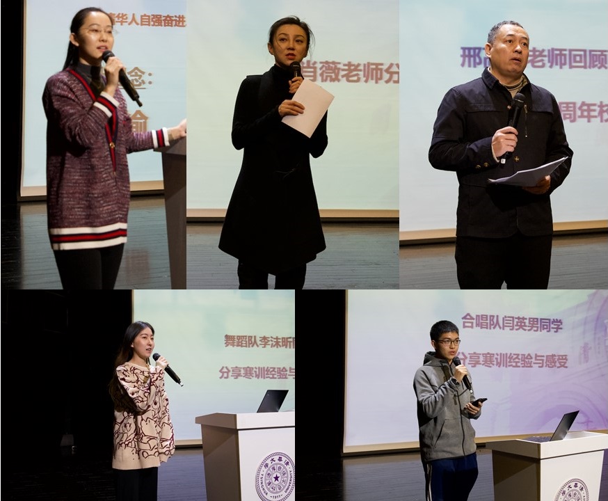 启动会上,校团委副书记、学生艺术团工作组组长阎博介绍了110周年校庆联欢晚会的筹备情况和推进计划。艺教中心副主任肖薇鼓励大家迎接挑战,勇敢坚持,共同见证和参与母校建校110周年。艺教中心教师邢高熙分享了作为舞蹈类节目负责教师参与百年校庆的经历,表达了对110周年校庆活动的信心。学生代表李沫昕和闫英男分别分享了曾经参与寒训的感受和对本次寒训成果的期待。