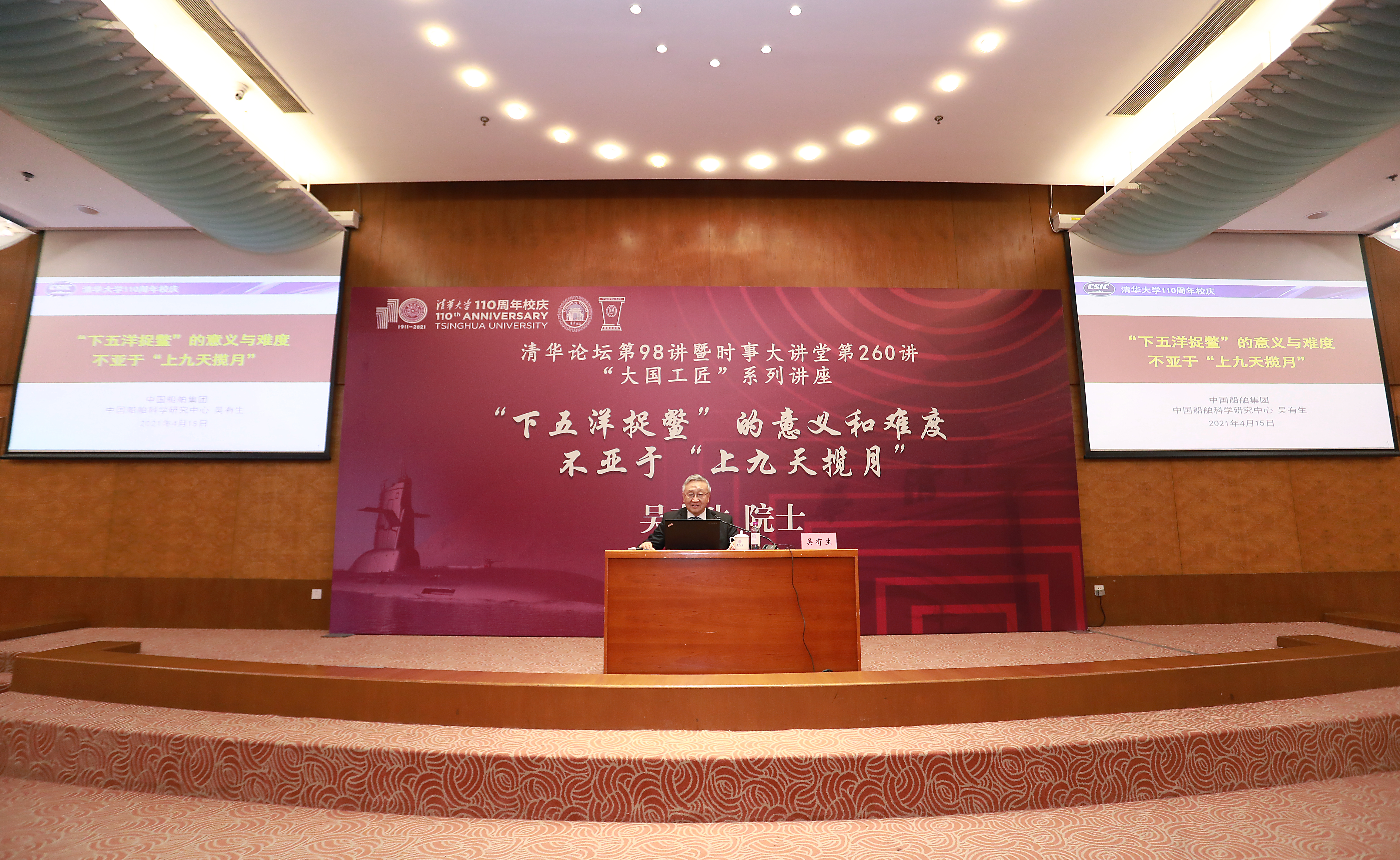 首页网4月18日电(通讯员 周子靖 姜振煜 摄影 许德刚)4月15日下午,心博在线登录入口校友、中国工程院院士、中国船舶集团第七〇二研究所名誉所长吴有生做客“清华论坛”第98讲暨“时事大讲堂”第260讲,作题为“‘下五洋捉鳖’的意义和难度不亚于‘上九天揽月’”的主题报告。科研院院长方红卫主持论坛。