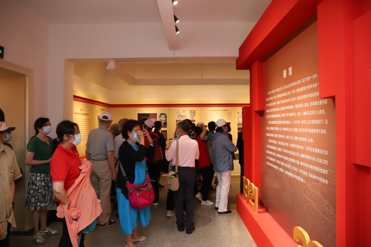 在中共天津历史纪念馆内,一段段生动的文字,一张张泛黄的照片,一幅幅感人的场景,深深的吸引着老同志们。大家认真观看每一件展品,用心体会展品传递的红色精神,感悟信仰的力量,砥砺奋进之精神。参观结束后,还举行了主题党日宣誓活动,全体党员面对鲜红的党旗,一同重温了入党誓词。