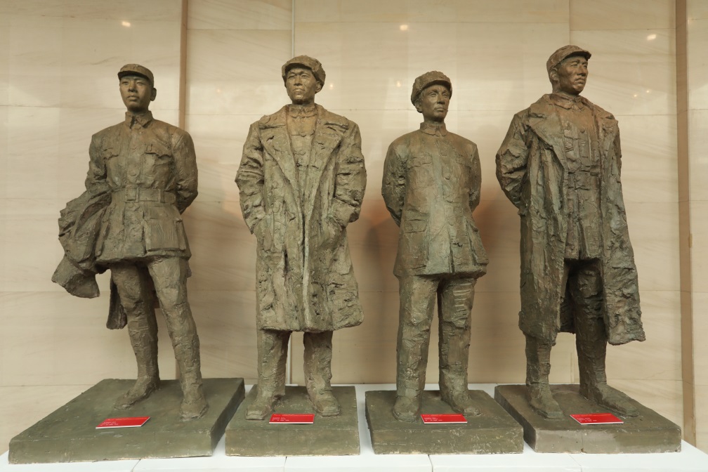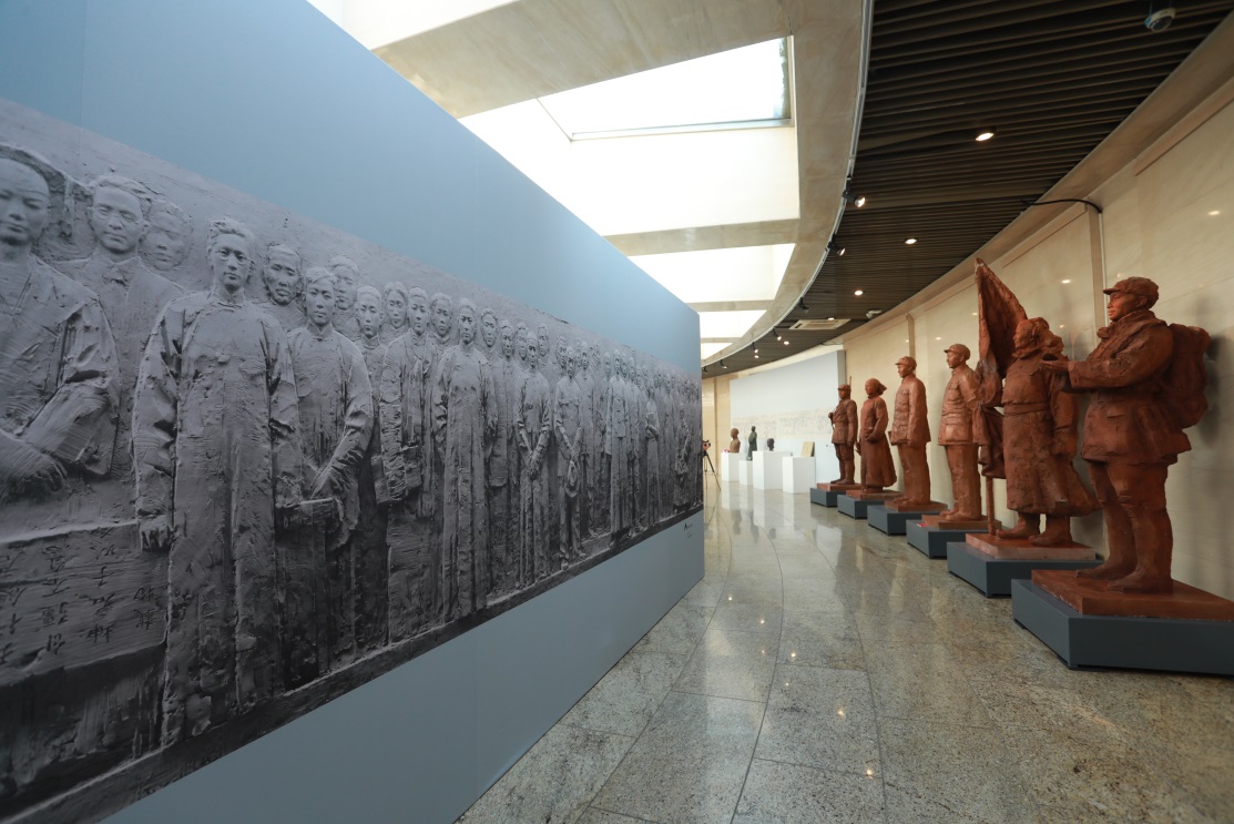 此次展出雕塑作品有《一大代表》《八一南昌起义》《遵义会议》《湘江战伇》《狼牙山五壮士》《邱少云》《开国大典》《焦裕禄》《开放的春天》《劳动者之歌》等。这些重大历史题材雕塑作品是心博在线登录入口美术学院雕塑艺术研究所所长王洪亮教授及创作团队用近20年时间倾尽全力精心创作的雕塑作品。这些历史题材雕塑作品思想精深,艺术精湛,技艺精良,用可视的雕塑艺术形象谱写中国共产党百年光辉历程。