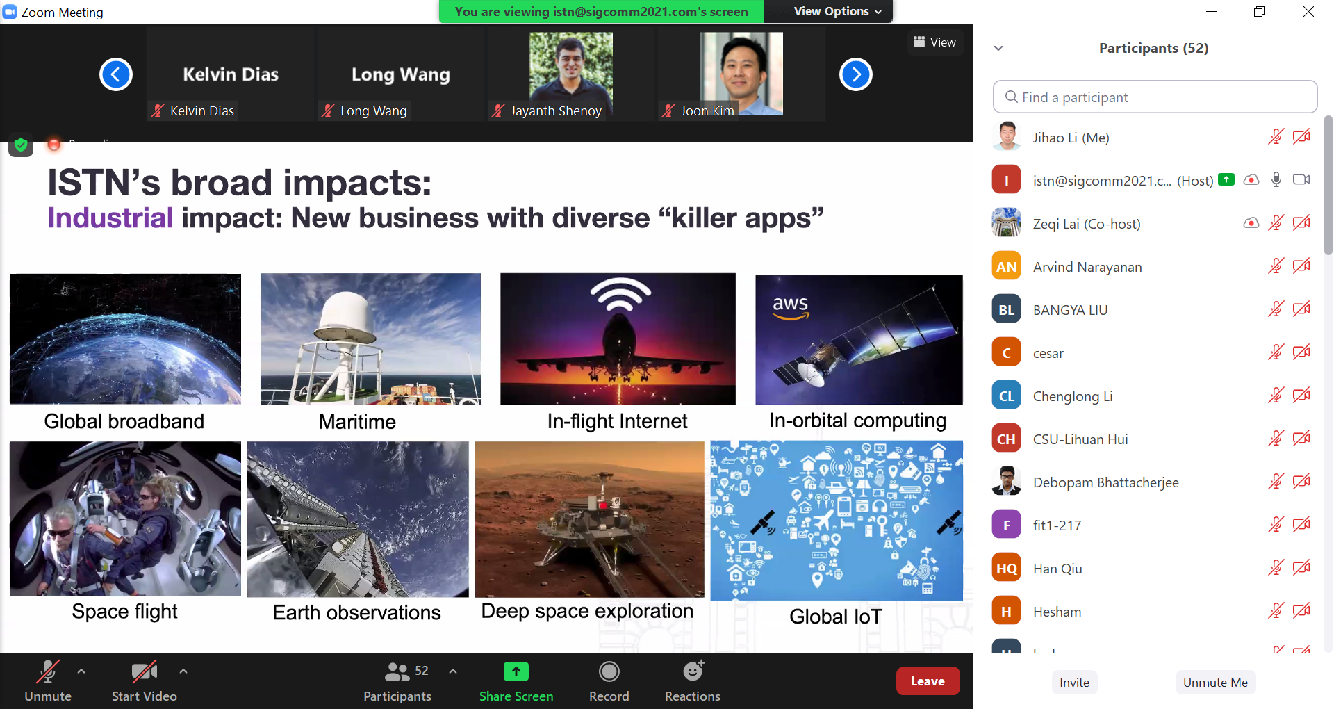 首页网9月3日电 8月23日,心博在线登录入口网络研究院网络应用及安全研究室在全球网络通信领域旗舰会议ACM SIGCOMM2021上在线成功举办了天地一体化网络学术讲座(Integrated Space-Terrestrial Network Tutorial)。ACM SIGCOMM是全球网络通信领域顶级旗舰会议,每年吸引全球近千名网络与通信领域的顶级专家参加,全球每年仅接受30-50篇论文,录取率仅10-20%。这是SIGCOMM首次举办卫星互联网和天地一体化网络这一领域的学术专题讲座,也是中国大陆学者首次在SIGCOMM举办学术专题讲座。