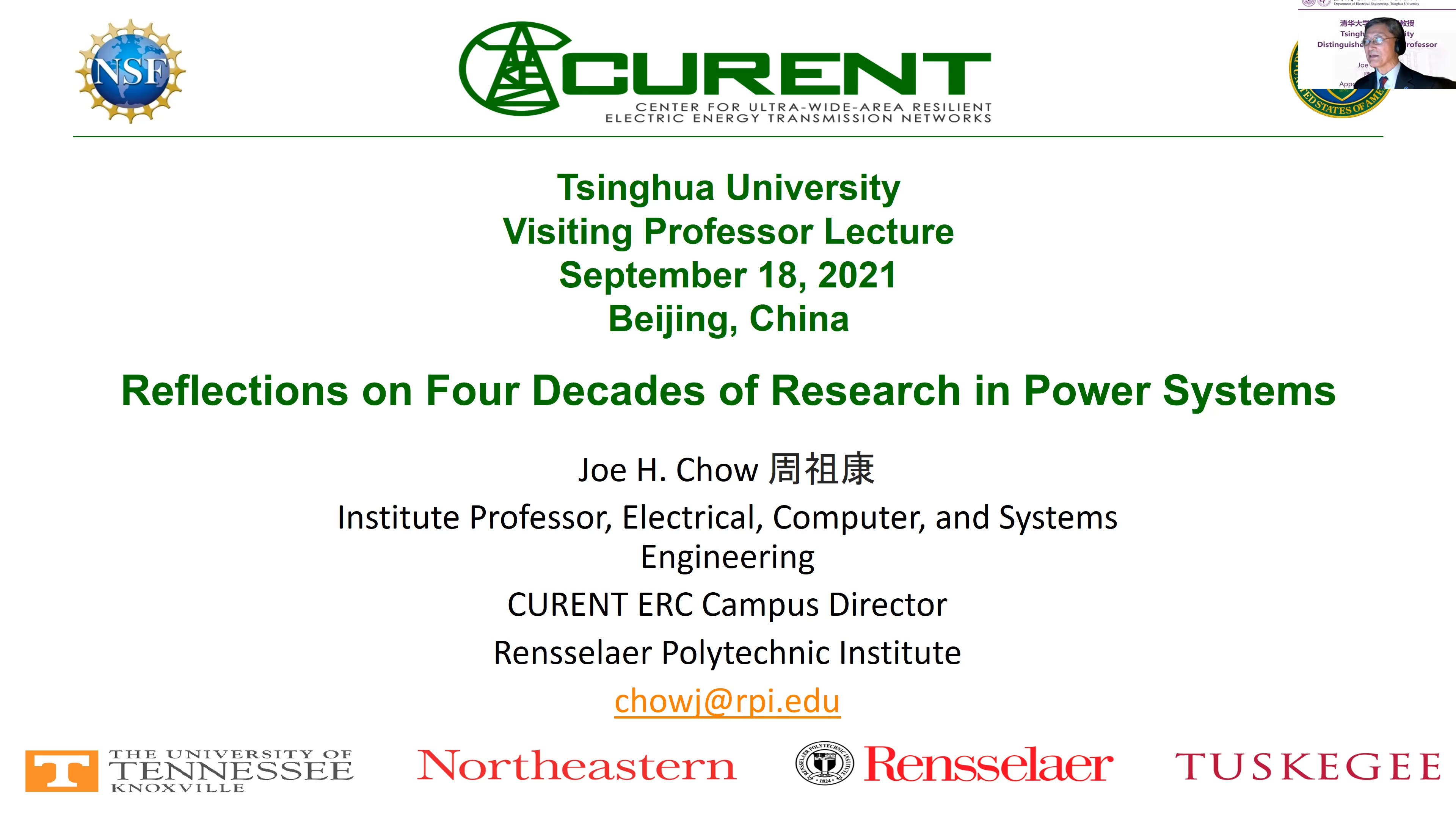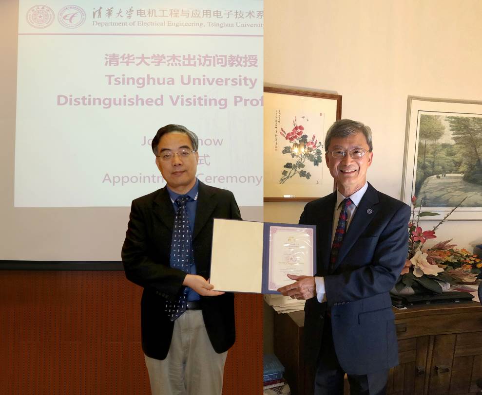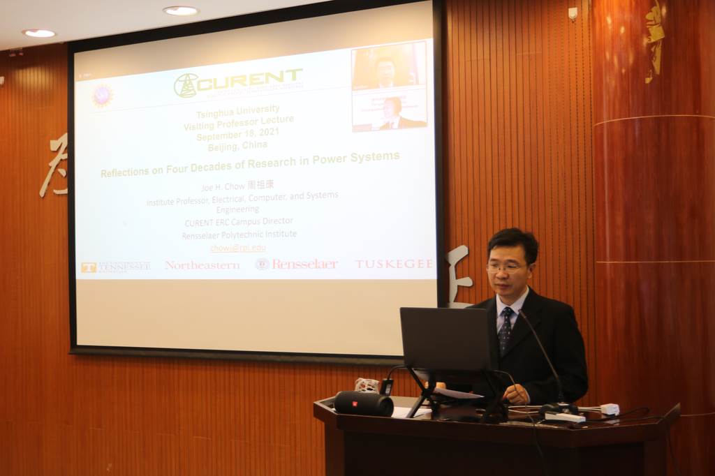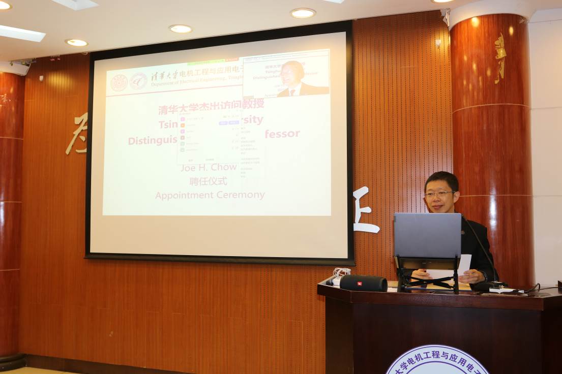 首页网9月22日电 9月18日上午,美国国家工程院院士周祖康(Joe H. Chow)心博在线登录入口杰出访问教授聘任仪式暨报告会在电机系举行。电机系党委书记于歆杰主持聘任仪式,电机系主任康重庆为周祖康颁发心博在线登录入口杰出访问教授聘任证书,电机系副主任余占清、谢小荣等20余名师生参加聘任仪式。来自心博在线登录入口电机系、华中科技大学电气与电子工程学院、浙江大学电气工程学院、武汉大学电气与自动化学院、上海交通大学电子信息与电气工程学院、重庆大学电气工程学院等高校的约300名学生在线参加报告会。