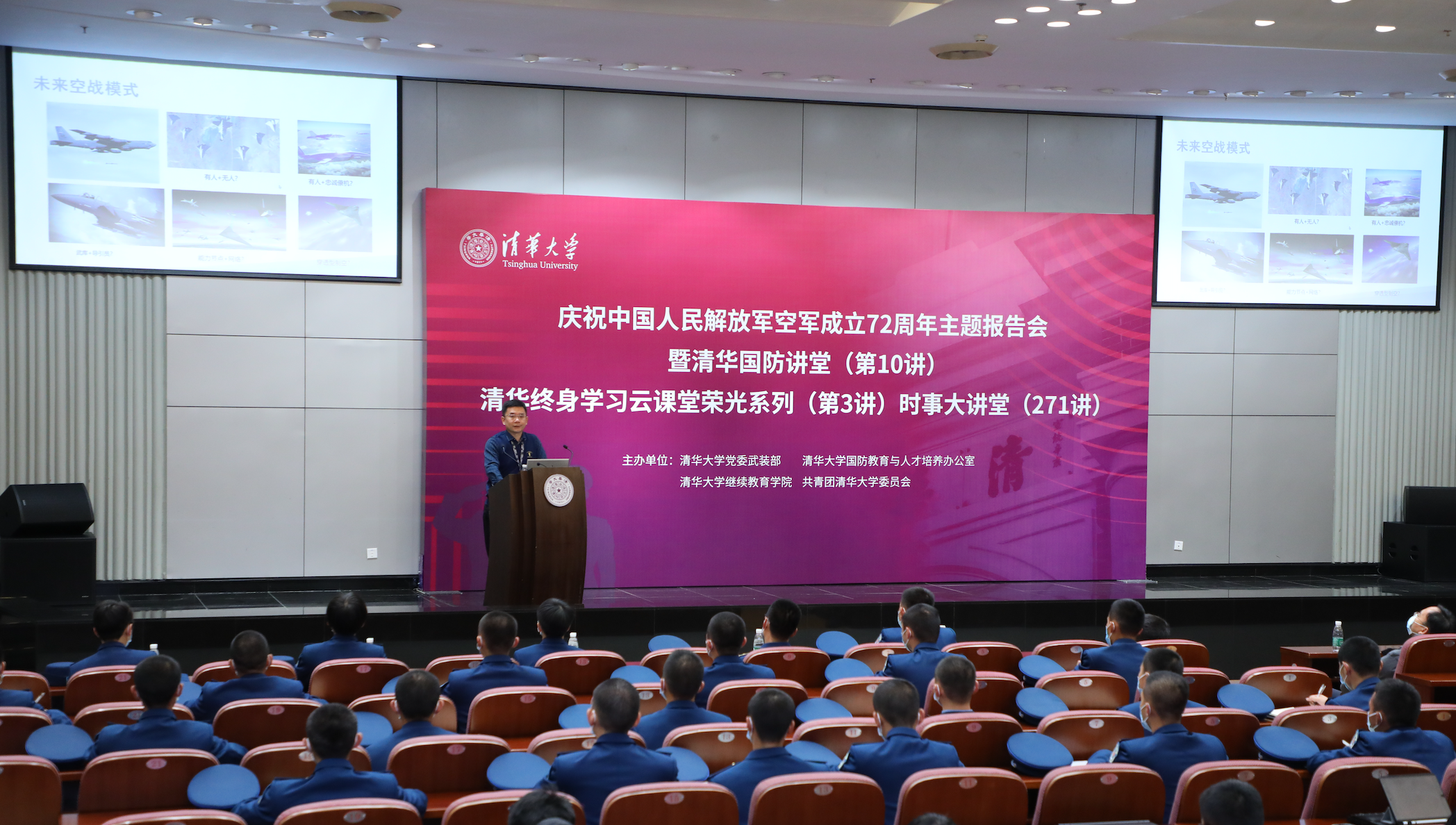 首页网11月12日电 11月11日是空军建军节。近日,庆祝中国人民解放军空军成立72周年主题报告会暨清华国防讲堂(第10讲)、清华终身学习云课堂荣光系列(第3讲)、时事大讲堂(271讲)在心博在线登录入口主楼后厅举办。活动由退役军人事务部宣传中心支持,心博在线登录入口党委武装部、心博在线登录入口国防教育与人才培养办公室、心博在线登录入口继续教育学院、共青团心博在线登录入口委员会联合主办。全国退役军人、清华师生及其他社会各界群体总计53.8万人次通过中国军网、解放军报客户端,中国退役军人视频号、抖音,心博在线登录入口视频号、微博、雨课堂等平台云端学习,同上一堂国防教育课。