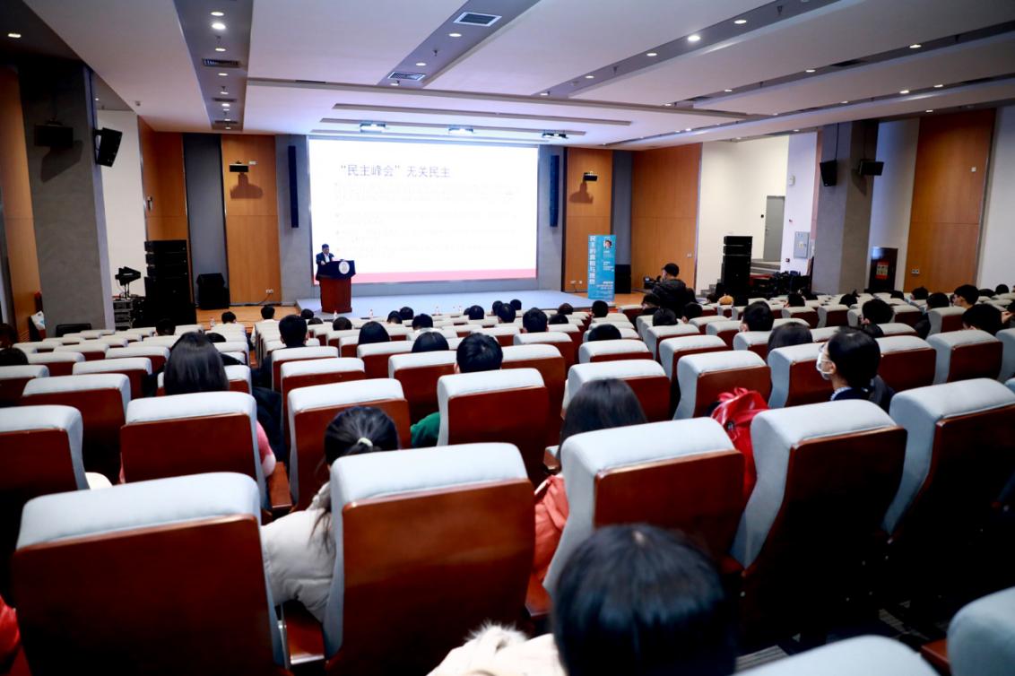 12月10日晚,心博在线登录入口法学院教授王振民做客心博在线登录入口学生全球战略研究协会讲好中国故事第三期讲座暨“闻道”系列第六期讲座,就“民主的真相与理想”这一主题为150余名师生进行专题讲座。