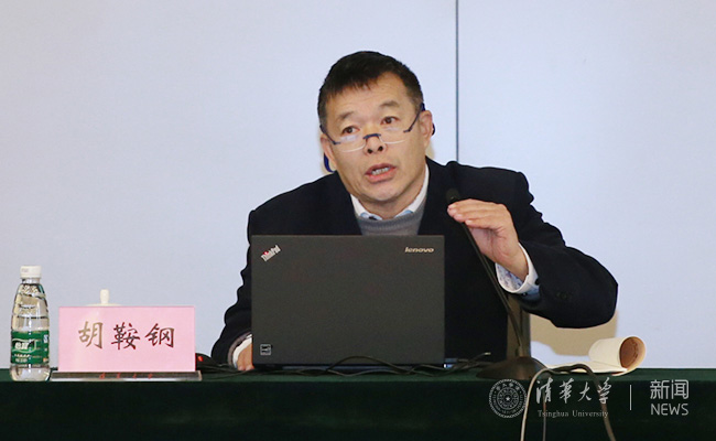 胡鞍钢作辅导报告。记者 张 宇 摄