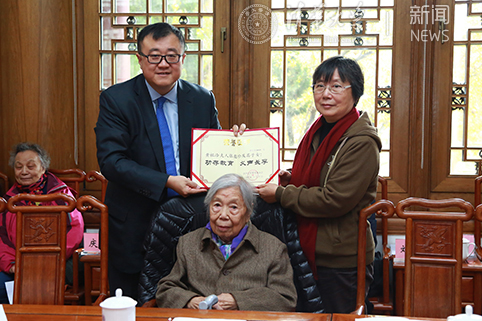 杨斌向黄祖洽先生的夫人和女儿颁发捐赠证书。记者 苑洁 摄