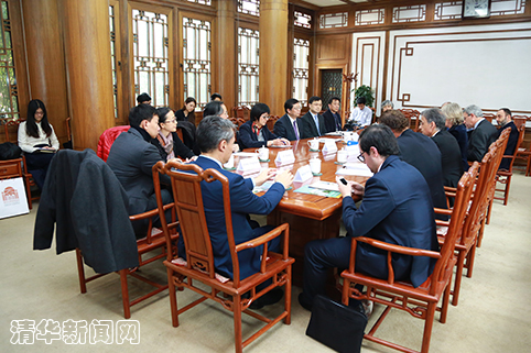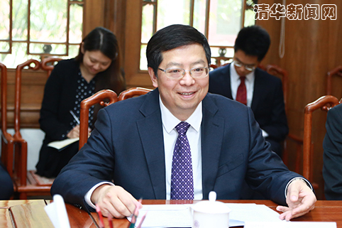 邱勇介绍清华国际发展战略和人才培养情况。记者 苑洁 摄