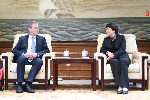陈旭与贝耐迪克森博士会谈。记者 张宇 摄