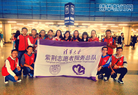 此外,讲解服务团不仅服务于清华,也服务于北京。除了校园里的“小红帽”们,讲解服务团还于十一期间召集45名紫荆志愿者前往北京西站,在进站口问询台等客流量较大的地方为来往旅客提供乘车、接站、买退票等引导服务。本项活动是与北京西站长期合作的项目,每到“五一”、“十一”、春节时便会启动,为旅客提供便利。国庆期间的引导时间为1日、2日、6日和7日共四天,分别对应进出京高峰。
