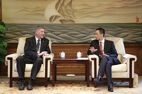 施一公与加拉格尔教授会谈。记者 张宇 摄