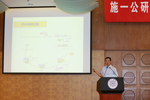 发布会上,施一公教授详细介绍了剪接体的三维结构及RNA剪接的分子结构基础的研究背景、研究概况、研究成果和科研团队情况。