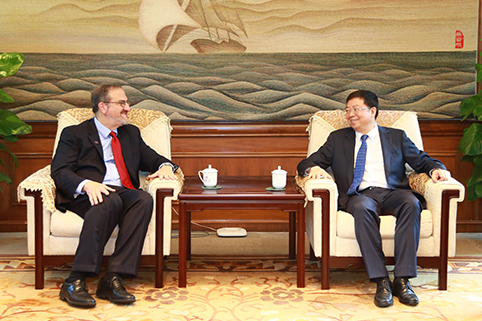 邱勇与施莱赛尔会谈。记者 苑洁 摄