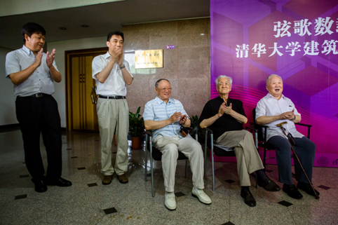 图为建筑学院2014届毕业典礼现场,右起:吴良镛院士、关肇邺院士、郑光中教授、庄惟敏教授、边兰春教授。