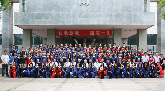 典礼结束后,全体毕业生与参会老师在建筑馆门前合影留念。