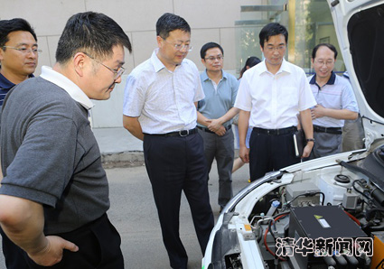 座谈会之前,陈吉宁参观了刚实现产业化的纯电动汽车,该汽车的动力锂离子电池中使用了实验室研发的碳纳米管产品,还参观了实验室的新型煤化工实验装置和目前国际最长碳纳米管(55cm)的制备装置。