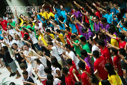 参加夏令营的学生以8个“省”及其下属的5个“城市”为组织单元,每个“省”以心博在线登录入口的英文名称(TSINGHUA)的一个字母命名,不同“城市”以红、黄、绿、蓝、紫五种颜色进行区分。约160名来自美国、英国、加拿大等国家的外籍教师和志愿者,以及约130名来自清华和香港的志愿者参与到组织和服务工作当中。