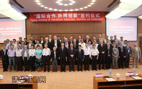 签约仪式上,薛其坤、丘成桐代表清华与中科院、法国国家科学研究院、意大利国际高等研究院、美国哈佛大学数学系、哈佛大学自然基础定律研究中心、英国剑桥大学物理科学学院、牛津大学数学研究所、美国斯坦福大学理学院、哥伦比亚大学数学系、伯克利加州大学数学系、芝加哥大学数学系、杜克大学数学系、日本东京大学卡弗里物理与数学宇宙研究所、香港中文大学数学系、台湾大学数学系、中山大学数学与计算科学学院等30余所国内外著名大学相关院系、研究所分别签署合作备忘录,共同搭建数学科学交流平台。此前,清华数学科学中心已和波兰科学院巴拿赫国际数学中心、俄罗斯科学院斯捷克洛夫数学研究所等七家单位建立了合作关系。