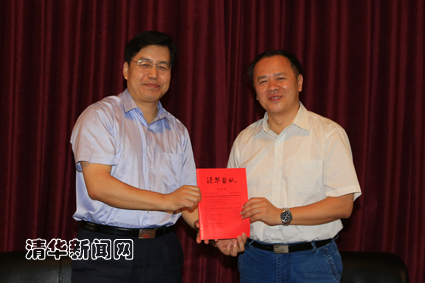 图书馆馆长邓景康代表图书馆接收《盟讯》的捐赠并为清华民盟颁发捐赠证书。邓景康还介绍了图书馆近几年的发展,并提到老馆的清华文库收藏校友出版物、校内出版物,并为知名校友设立专柜;特藏资源包括了很多珍贵资料,如保钓资料、文革资料、海外捐赠、名人院士手稿、签名本等。邓景康表示,《盟讯》的收藏,不仅是对清华民盟发展史的一个记录,最重要的是为今后学者研究清华民盟提供一条清晰的研究脉路。
