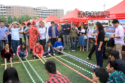 活动现场整齐地摆放着由来自世界五大洲不同国家大使馆工作人员或留学生精心布置的30余个展棚。巴基斯坦展棚里立起了精美的画作,加拿大驻华大使馆工作人员与清华同学面对面交流,沙特展棚旁边支起了传统的帐篷,越南学生现场跳起了富有节奏感的竹竿舞,阿根廷的红酒让现场观众大饱口福,日本留学生们穿上了民族传统服装,韩国留学生用互动游戏将周围的气氛推向高潮。