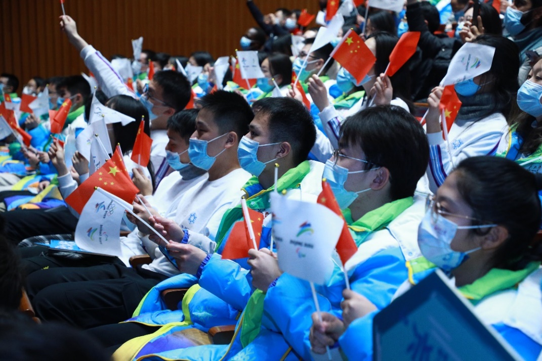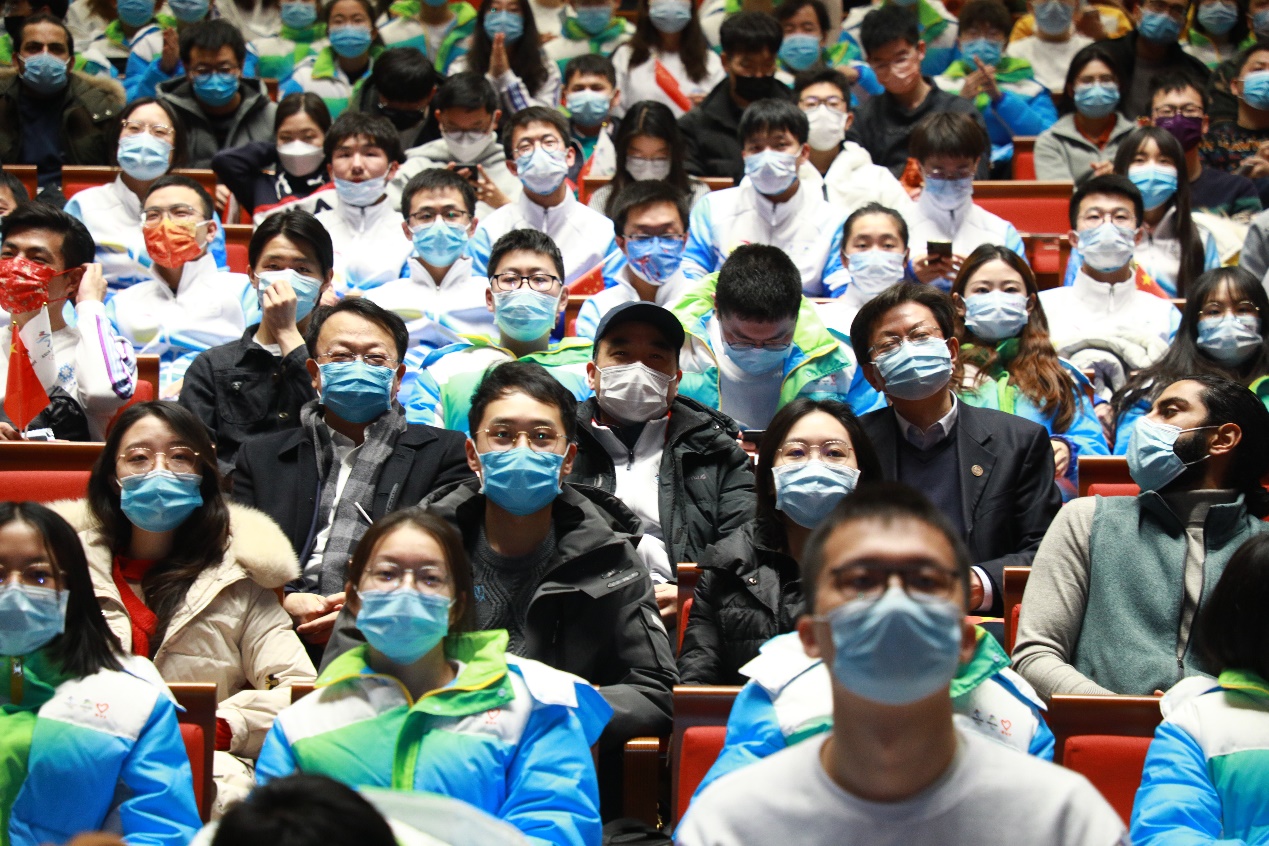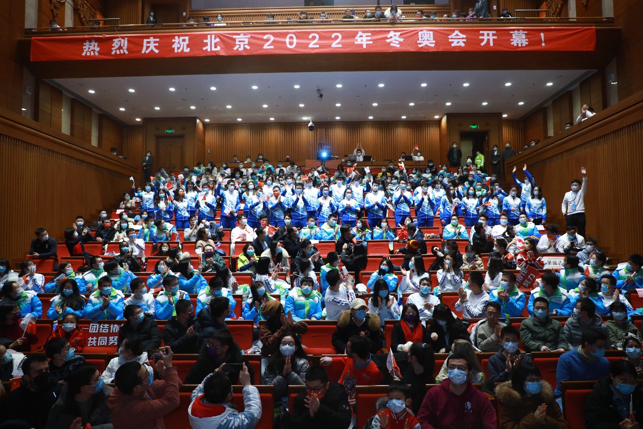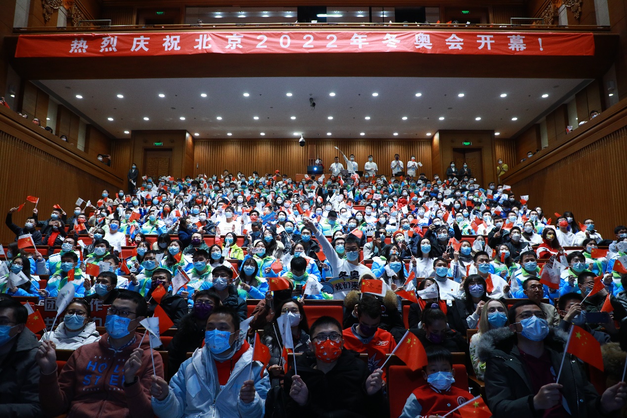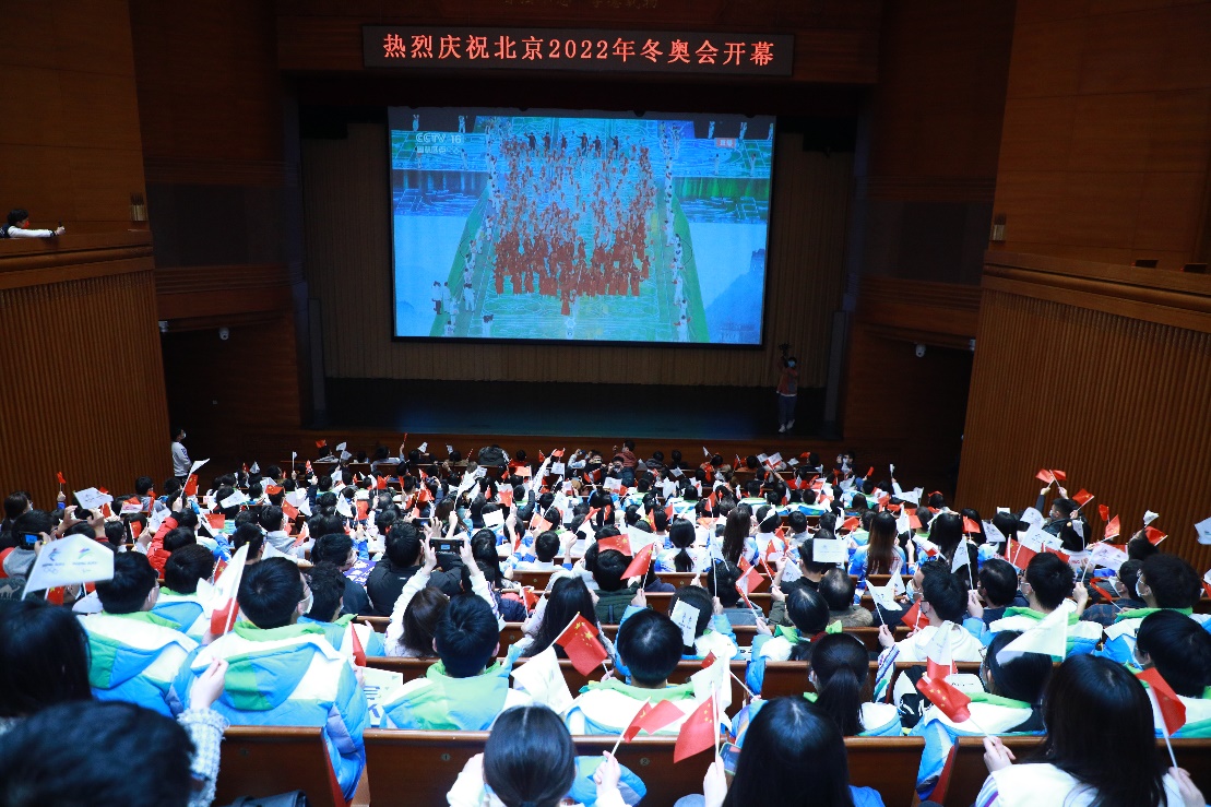 首页网2月6日电 迎接冰雪之约,奔向美好未来。2月4日晚,北京第二十四届冬季奥林匹克运动会开幕式在国家体育场隆重举行。国家主席习近平出席开幕式并宣布本届冬奥会开幕。当晚,北京市委教育工委副书记李军锋、安全稳定工作处处长庞谦,校领导王希勤、李一兵、过勇,校冬奥志愿者专项工作领导小组成员,与部分冬奥志愿者、在校学生480余人齐聚蒙民伟音乐厅、南区学生活动中心,集中观看北京2022年冬奥会开幕式直播,共襄盛举,同向未来。